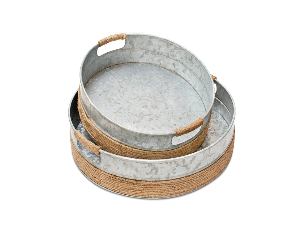 Vente en gros lot de 2 plateaux galvanisés faits main nouvelle forme d'ustensiles de cuisine pour la salle à manger article décoratif jardin fabricant exportateur