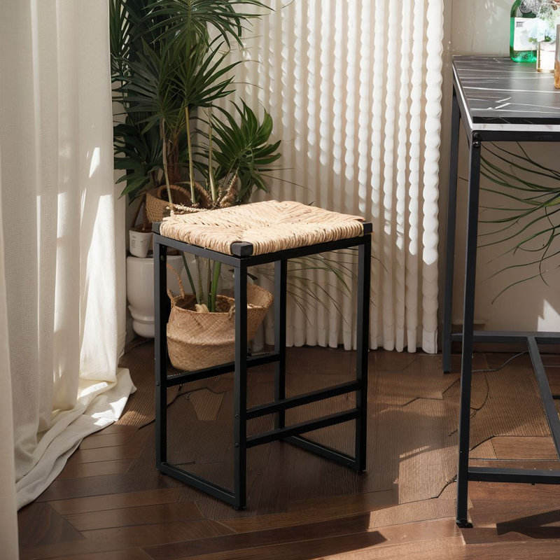 Lot de 2 tabourets de bar sans dossier tissés rustiques en jacinthe d'eau avec repose-pieds