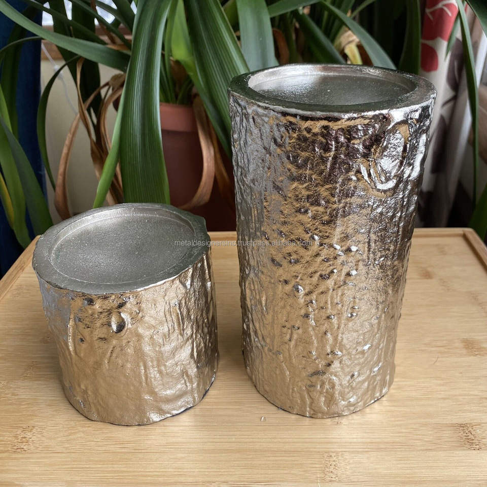 Product name:S/2 Textured Cast aluminium silver Candle Holders