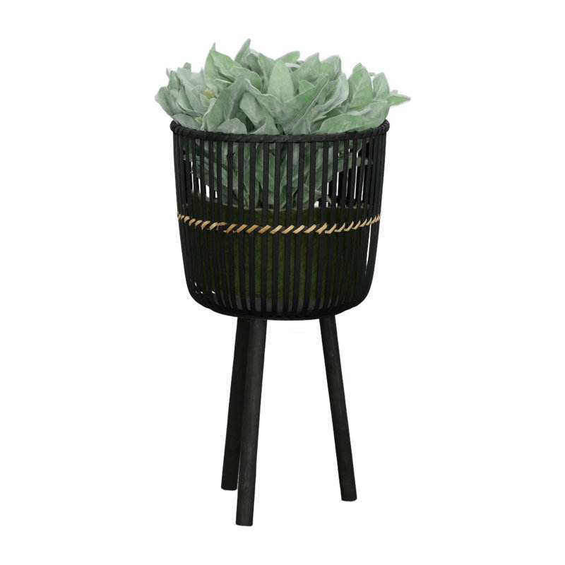 Set of 2 Wicker and Bamboo Planters with Peat Eco-Friendly Garden Decor