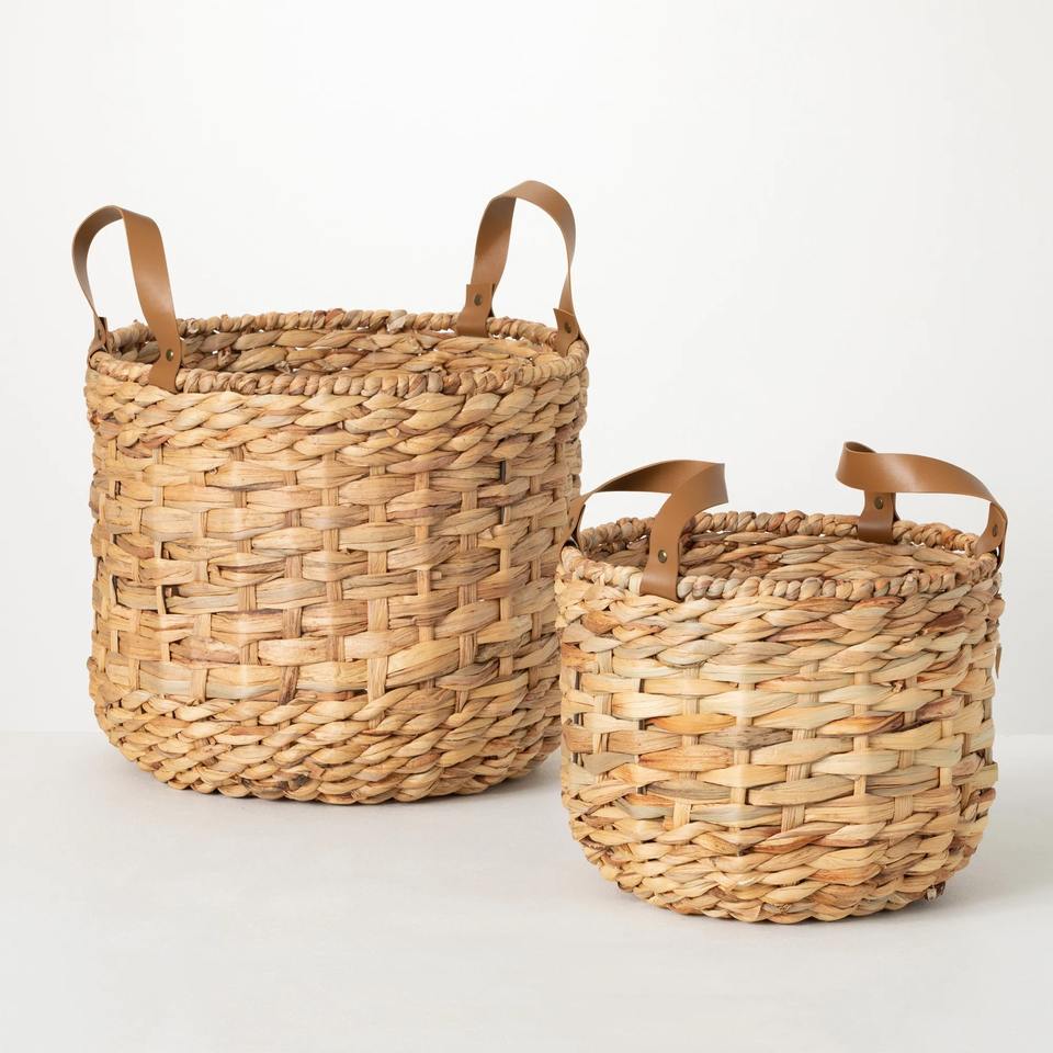 Set of 2 round water hyacinth baskets:Size: L: D15 x H13,5 M: D12 x H10 inch