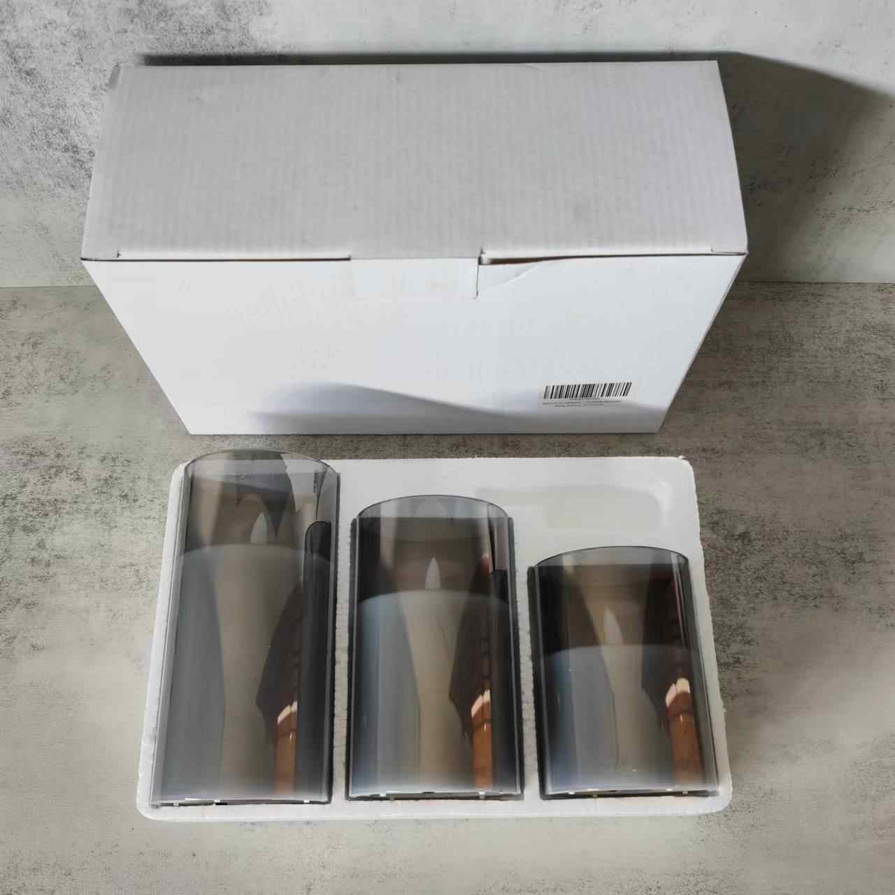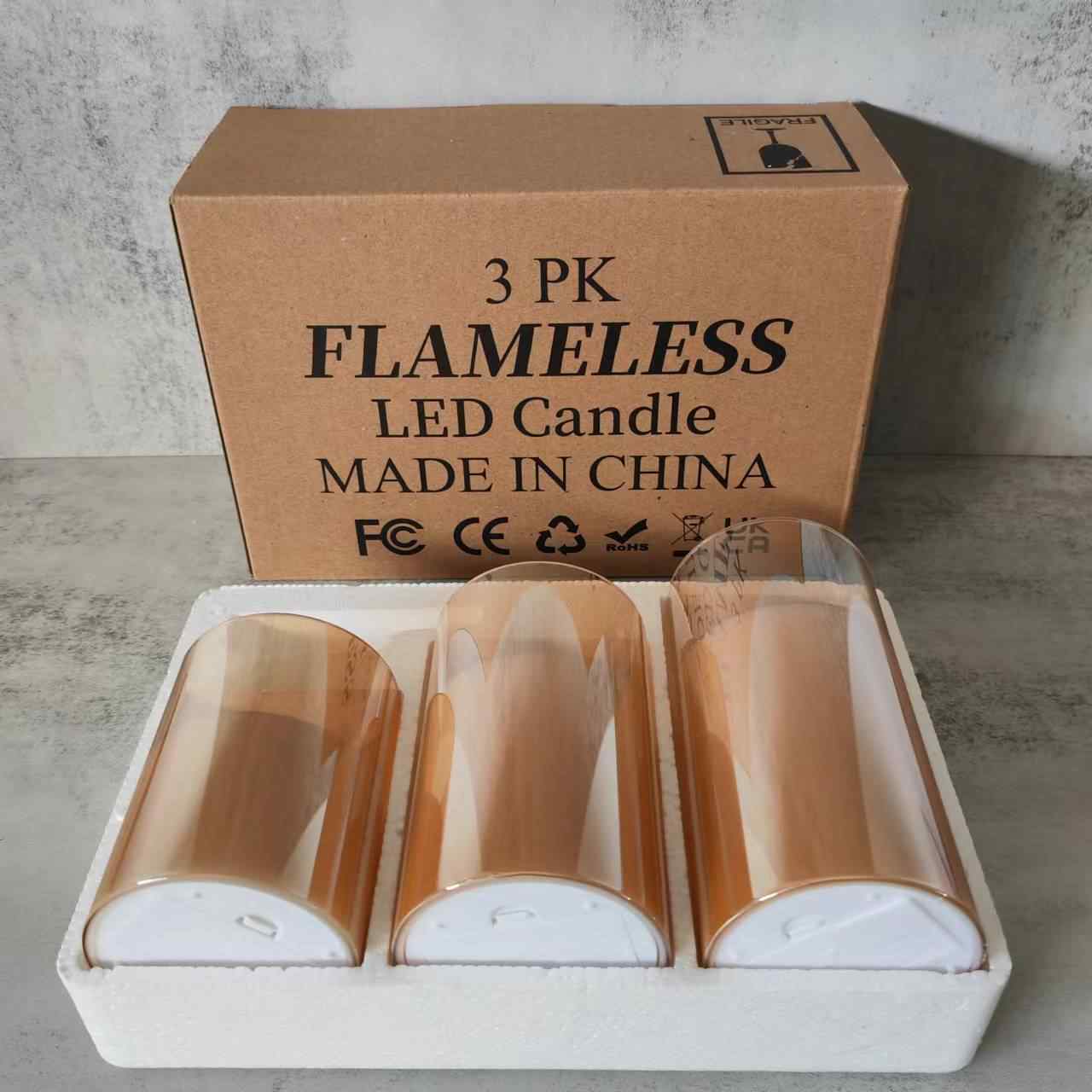 Lot de 3 bougies à LED en cire électronique 3D sans flamme scintillante à piles dans un bocal en verre rouge avec télécommande et minuterie
