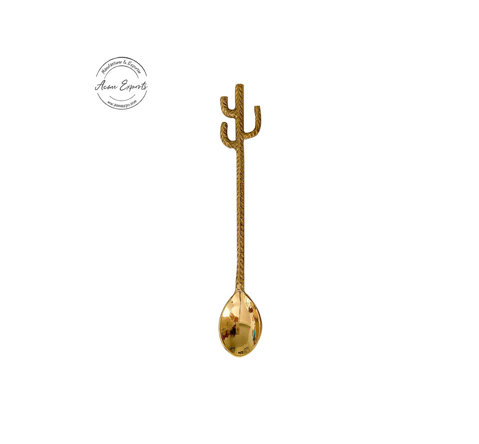 Ensemble de 3 cuillères en laiton design cactus finition or Couverts élégants et uniques parfaits pour le service du thé au café et les cadeaux
