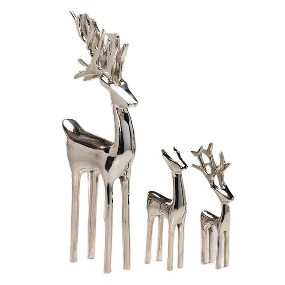 Sculpture de rennes assis et debout mangeant les modèles de figurines de renne de Noël en fonte d'aluminium les plus tendances en gros