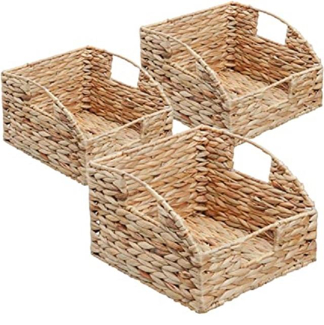 Ensemble de 3 paniers de rangement de pain en rotin marron foncé artisanal Fruits légumes Table de dessus de Table café panier de dessus de Table