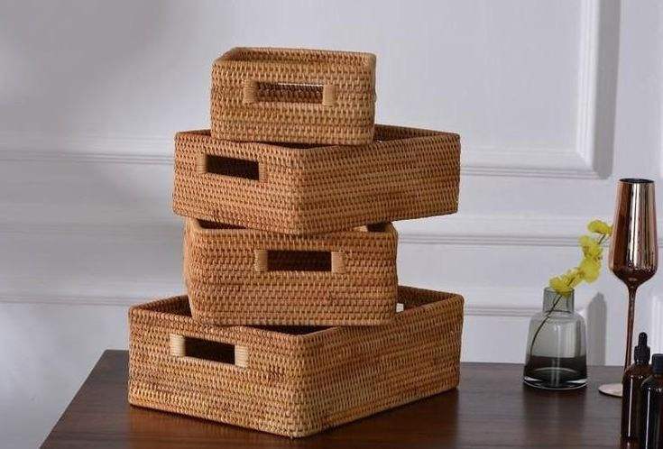 Ensemble de 3 paniers de rangement en tissu de couleur foncée, idéal pour le rangement ménager et l'organisation polyvalente, vente en gros en provenance d'Inde
