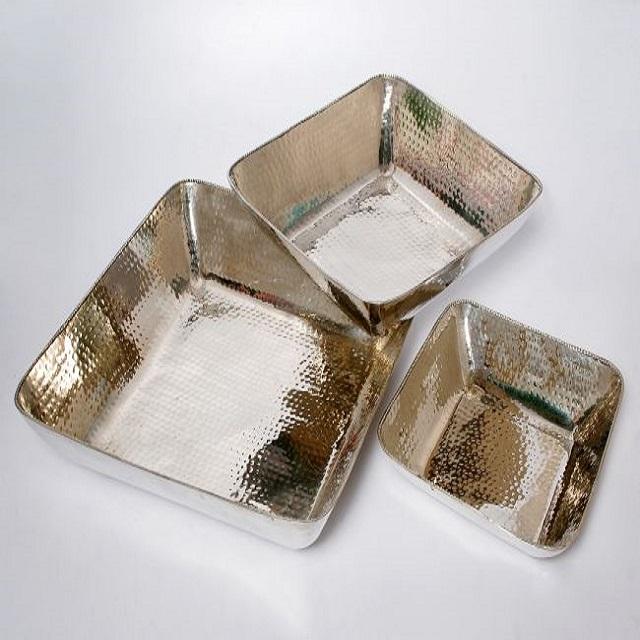 Lot de 3 plateaux fantaisie pour fast-food, dernière conception, forme rectangulaire, couleur or clair, décoration de table, plateau de service alimentaire antique