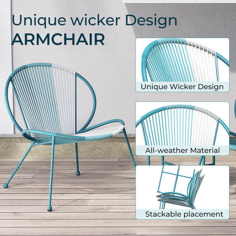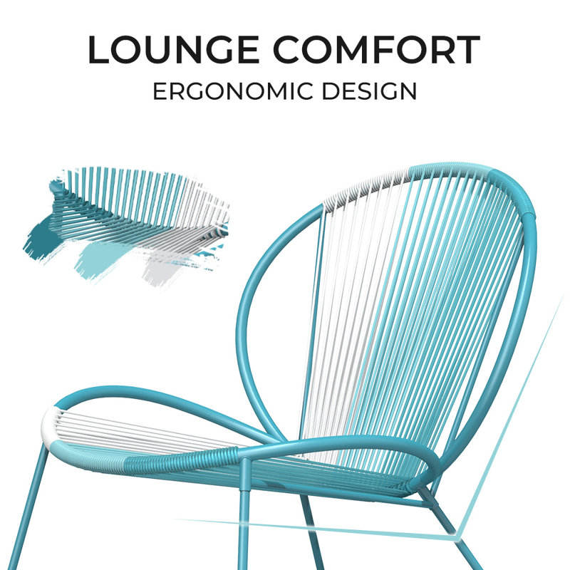 Set of 3 Garden Sets with Steel Frame and Rattan String Durable Outdoor Furniture