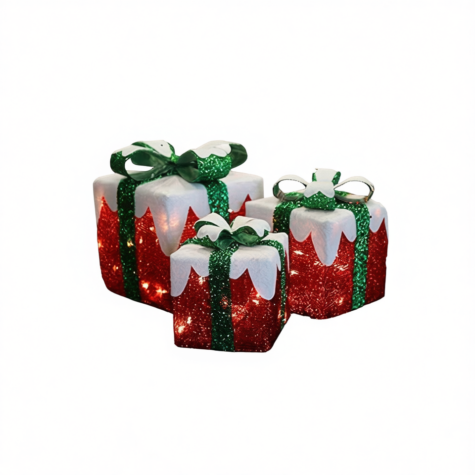Ensemble de 3 boîtes lumineuses LED rouges et vertes en forme de nœud, décoration de Noël intérieure et extérieure, modèle D0100X31E9P