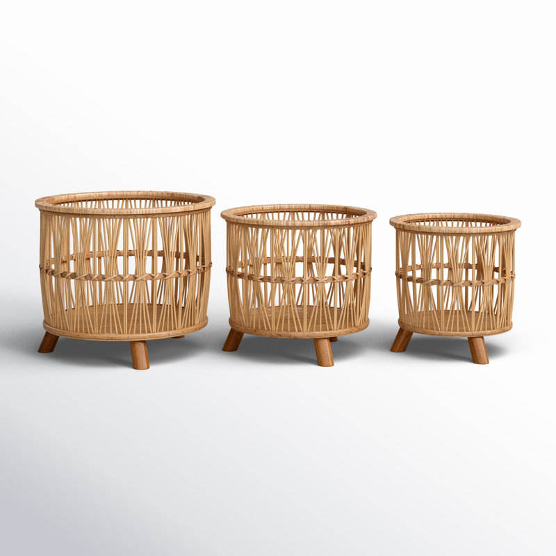 Set of 3 Modern Round Woven Bamboo Footed Baskets Handmade Fabric Storage for Kitchen & Living Room for Food & Flower Pot