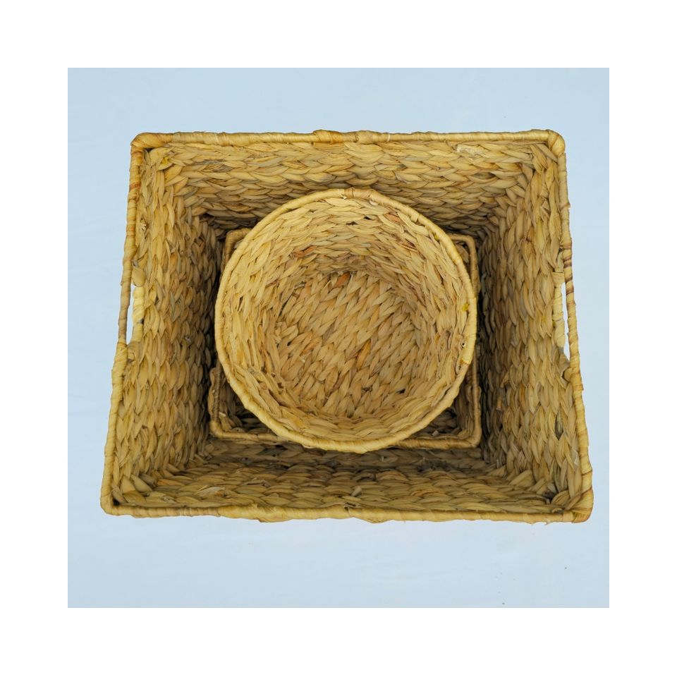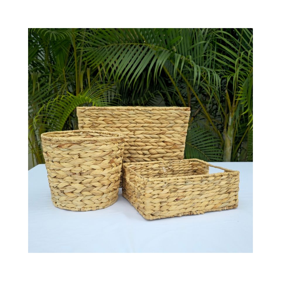 Set of 3 Multi-Shape Water Hyacinth Baskets Eco-friendly Decorative Storage for Flowers Fruits Vegetables and Kitchen Spice Jars