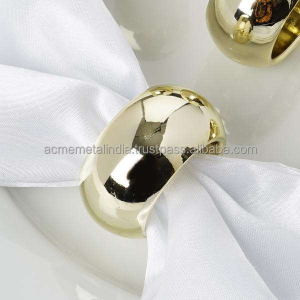 Lot de 3 ronds de serviette en métal poli doré de taille personnalisée, parfaits pour la décoration de table de mariage et d'événement en Inde