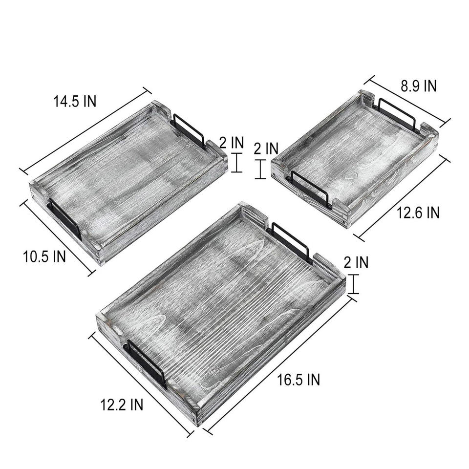 Nom du produit:Plateaux de service en bois de pin avec poignées l Ensemble de 3