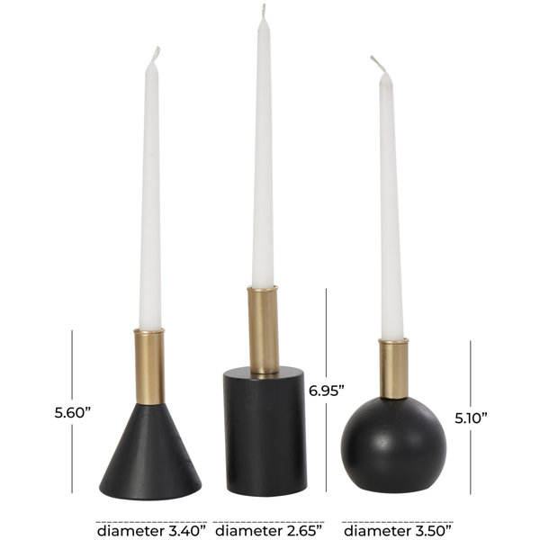 Set of 3 Premium Wooden Candle Holder Table Ware with Metal Arm Black and Gold Color Wholesale Best Selling From India 2025