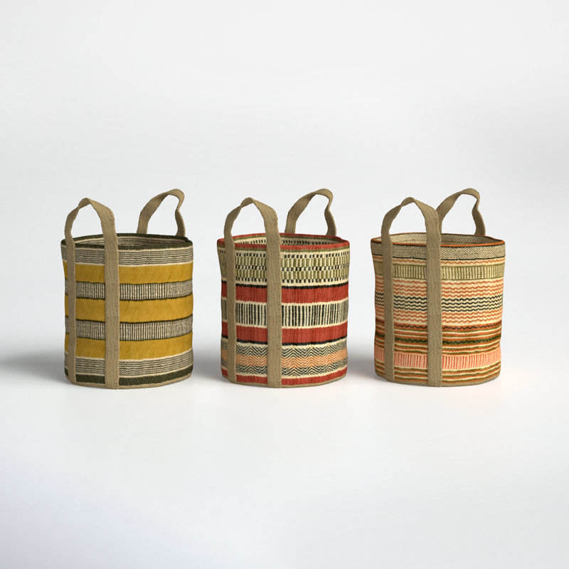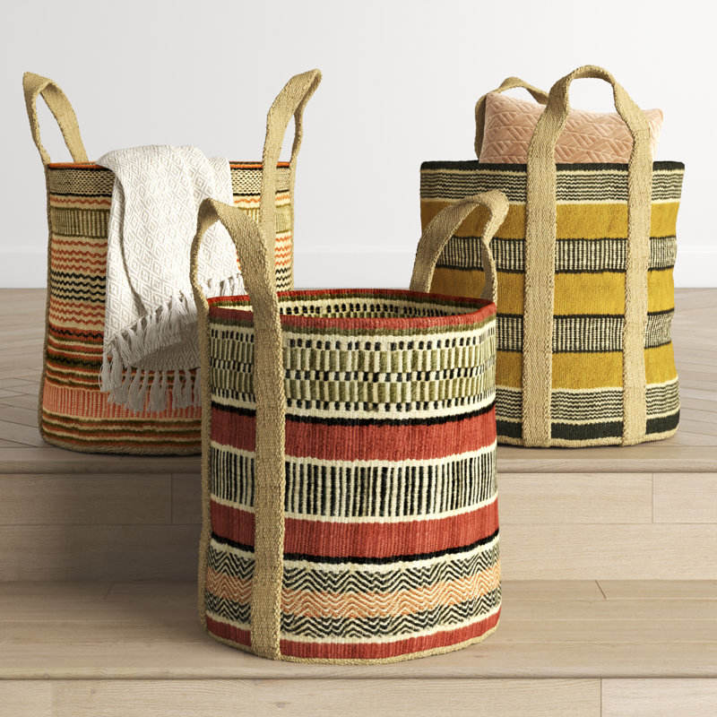 Set of 3 Sisal Decorative Baskets Handwoven in Natural Style Woven Basket Collection