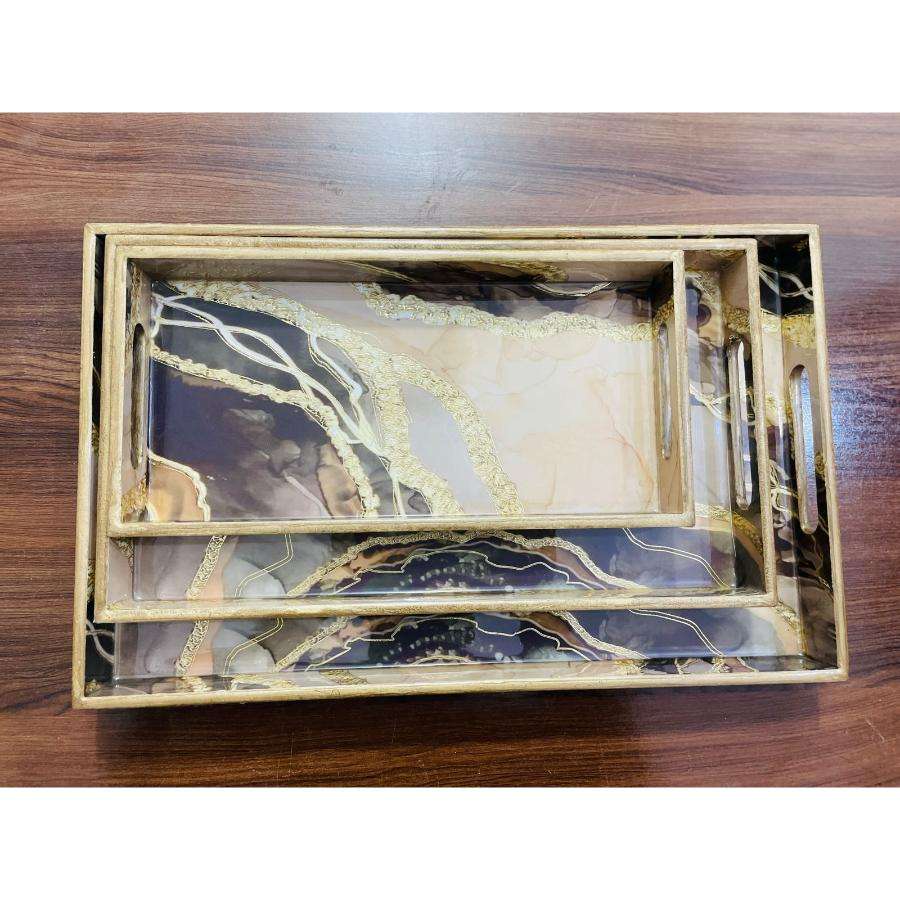 Set of 3 Trending Enamel Trays Small Medium Large Size Decorative Wooden Tray Lightweight Eco Friendly Serving Trays For Sale