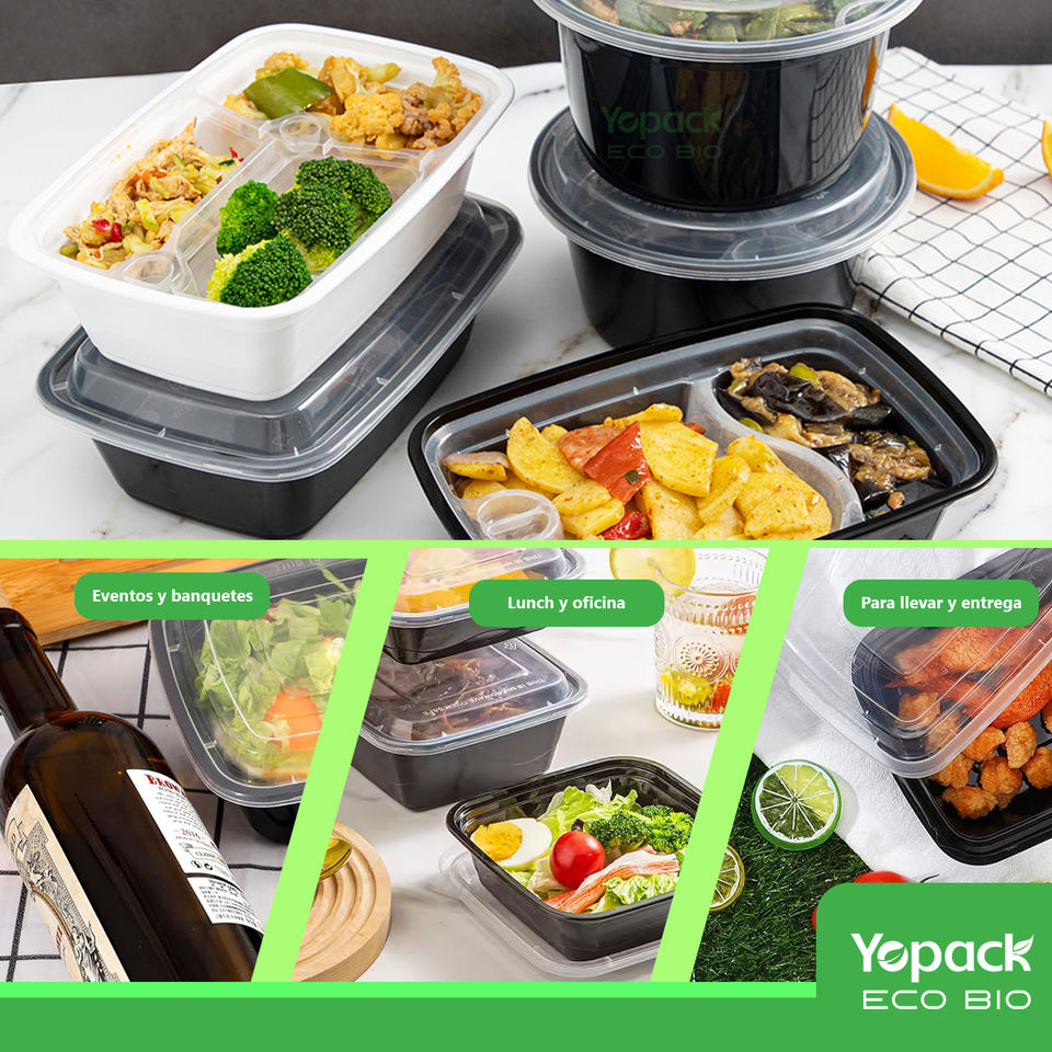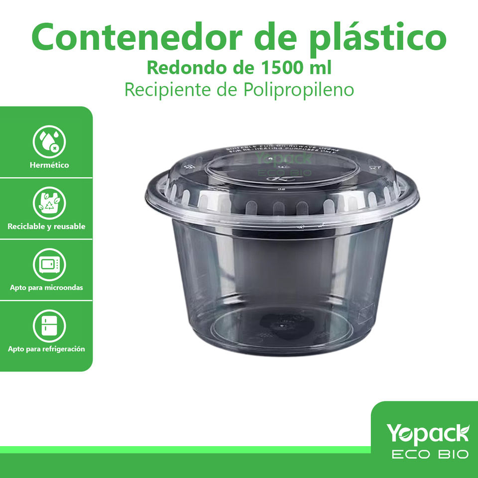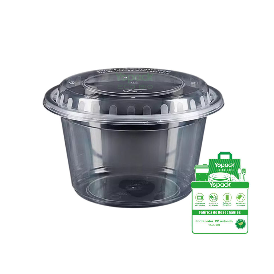 Set of 300 Disposable American Style 1500ml High Capacity Round Plastic Lunch Boxes Disposable PP Containers