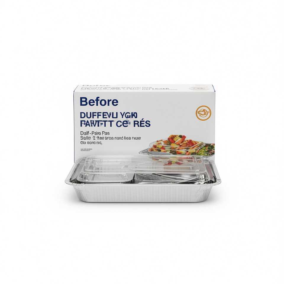 Barquettes jetables demi-format pour buffet avec ustensiles pour fêtes, événements, barbecues, traiteur – Métal argenté