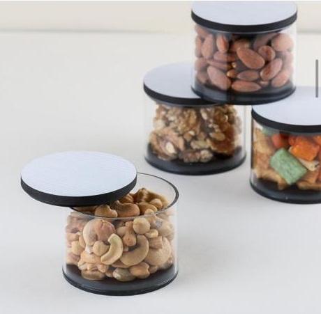 Ensemble de 4 boîtes à fruits secs sucrés en acrylique avec plateau en métal Boîte à bonbons de forme ronde au design admirable d'Inde