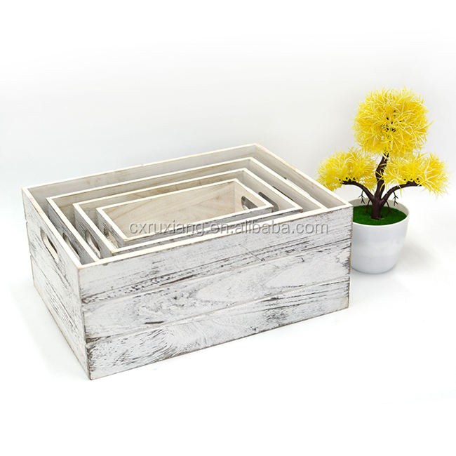 Product Name:Set of 4 rustic white wood boxes wholesale