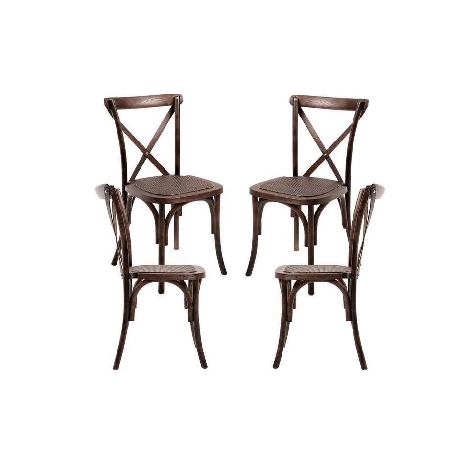 Set of 4 Antique-style Cross Chairs Stackable Polypropylene with Wood Effect for Outdoor Garden or Living Room Furniture