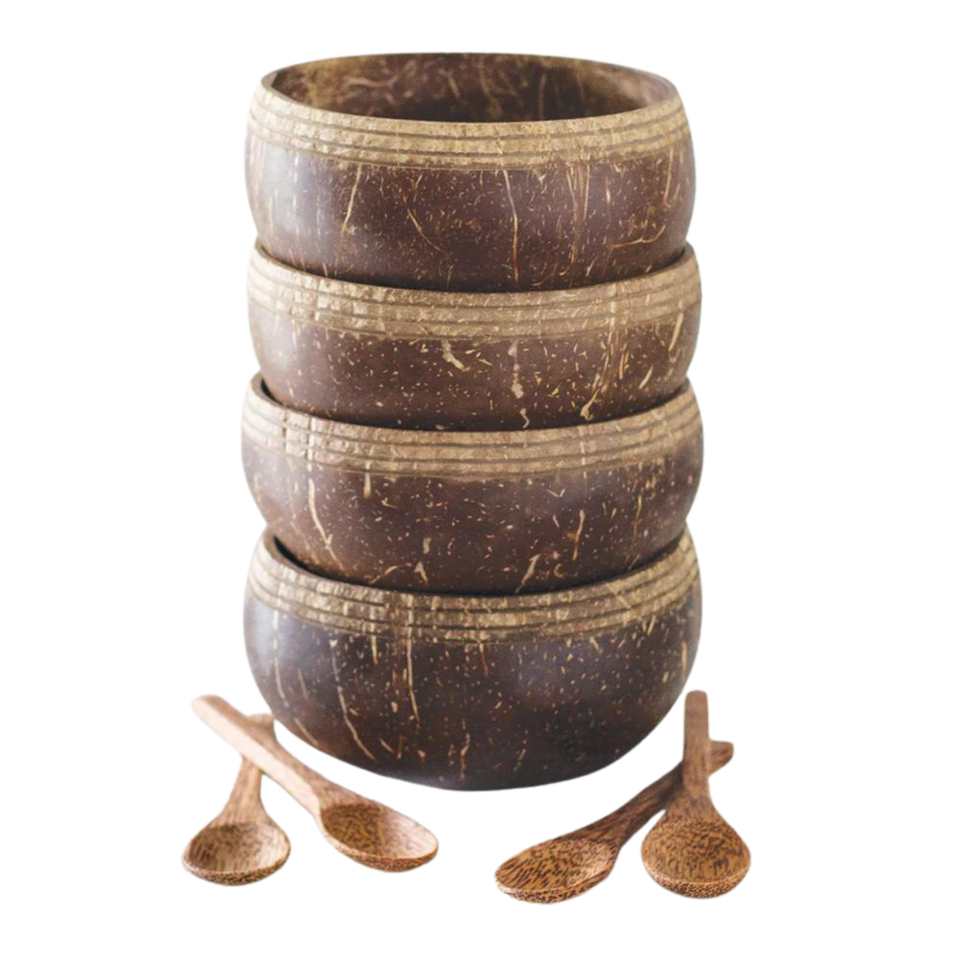 Ensemble de 4 bols et cuillères en coquille de noix de coco faits à la main de haute qualité fabriqués au Vietnam/bols en coquille de noix de coco écologiques naturels réutilisables