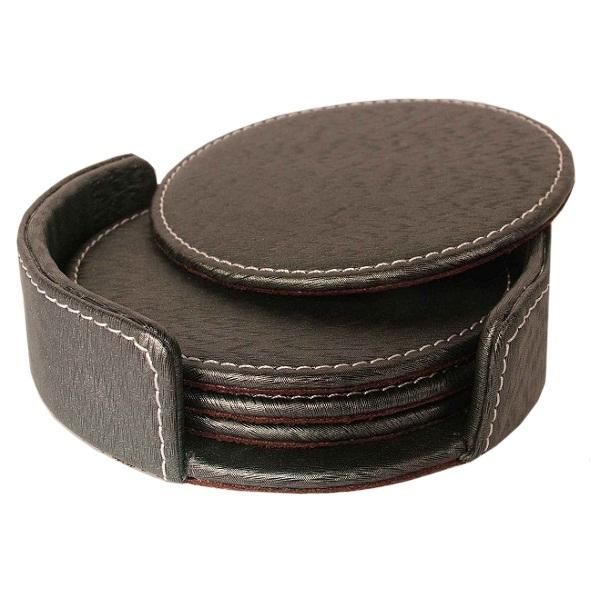 Ensemble de 4 pièces en cuir noir et rond pour le bureau, sous-tasse, protection pour ses affaires