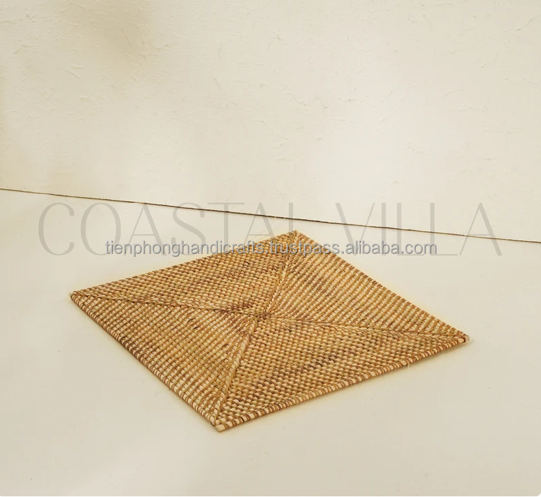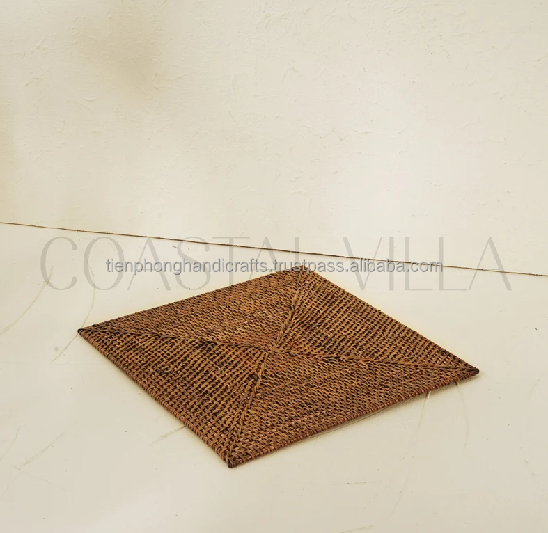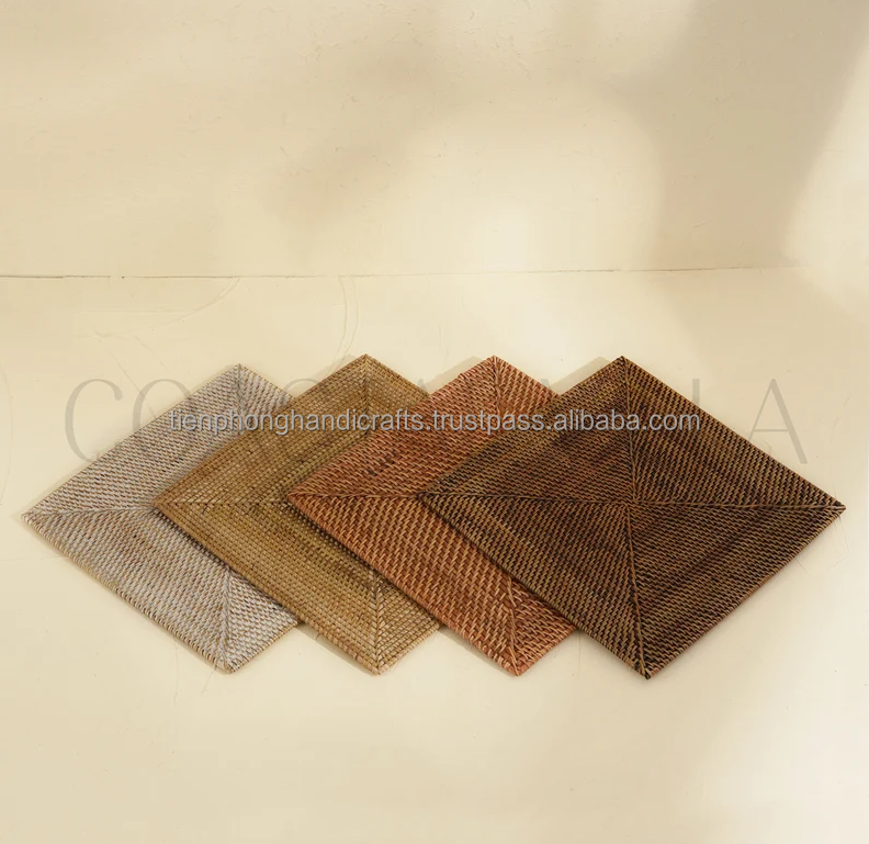 Set de 4 sets de table carrés en rotin, napperon pour la cuisine, Style moderne | 100% rotin naturel | Artisanat Tienphong