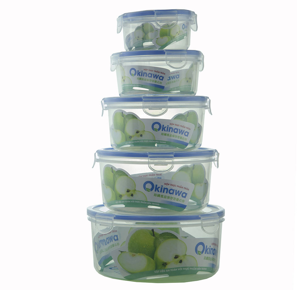 Product name:Set of 5 Microwavable Airtight Plastic Food Storage Boxes with Lids