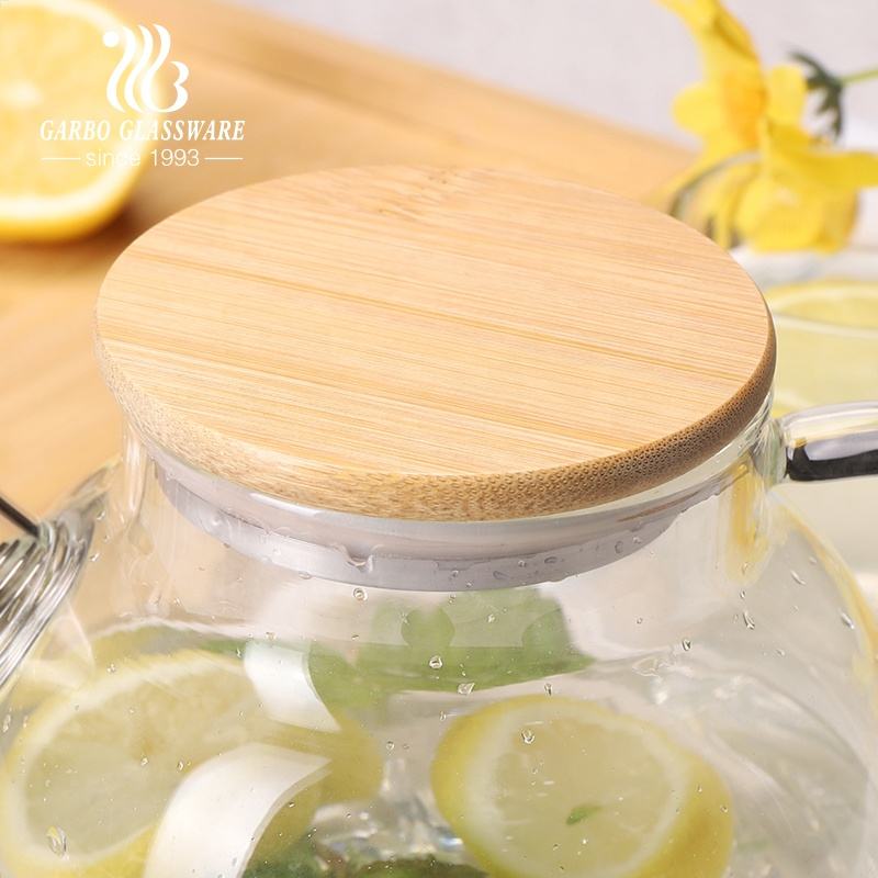 Lot de 5 kits de thé en verre, théière en verre à haute teneur en Borosilicate résistant à la chaleur, bouilloire à thé en verre, pichet avec couvercle en bois, théière transparente