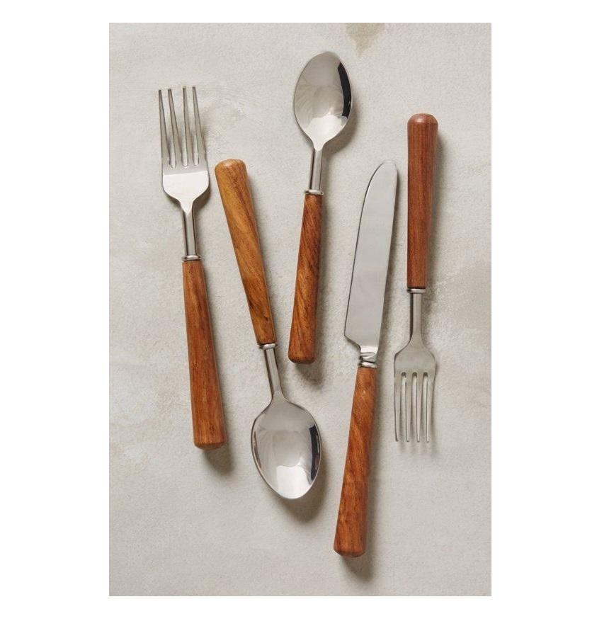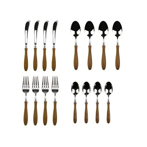 Lot de 6 couverts, cuillère, fourchette, couteau, couverts, acier inoxydable de qualité exclusive avec poignées en bois