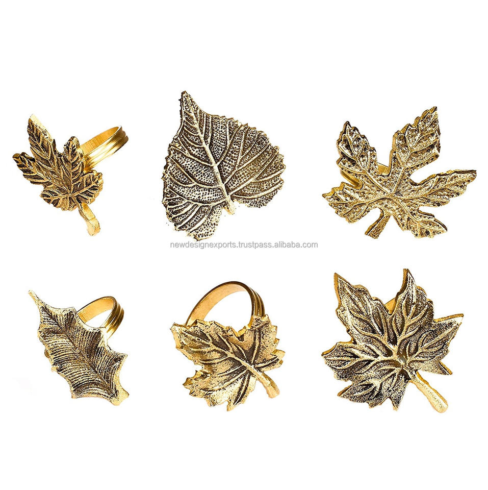 Ensemble de 6 anneaux de serviette feuille d'automne maison ronds de serviette en métal pour les décorations de fête en vrac Table à manger de tous les jours réunions de famille