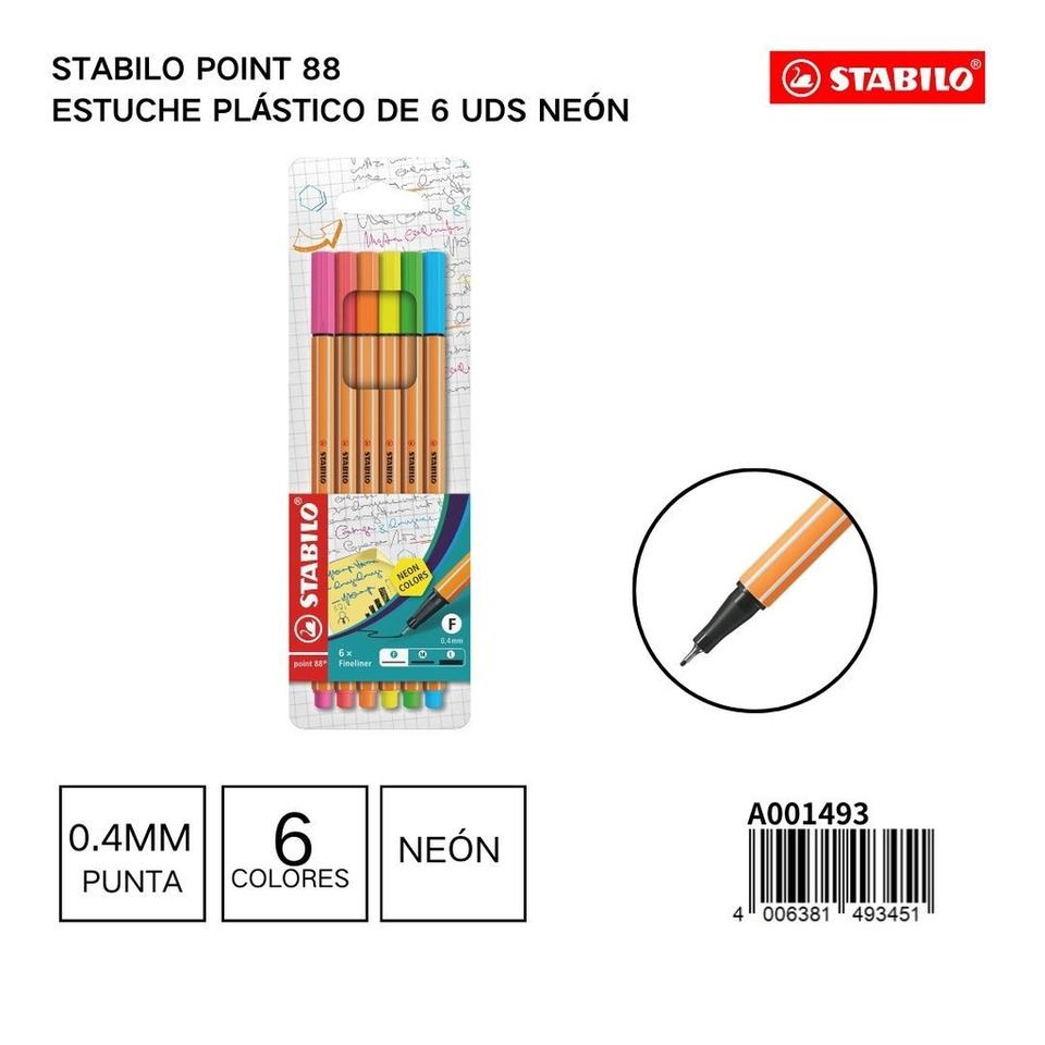 Set of 6 STABILO point 88 0.4mm fluorescent markers - Writing instruments