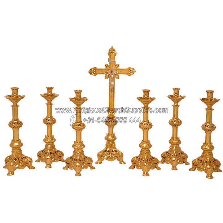 Altar Cross and Candle sticks Set of 7 piecescandle type