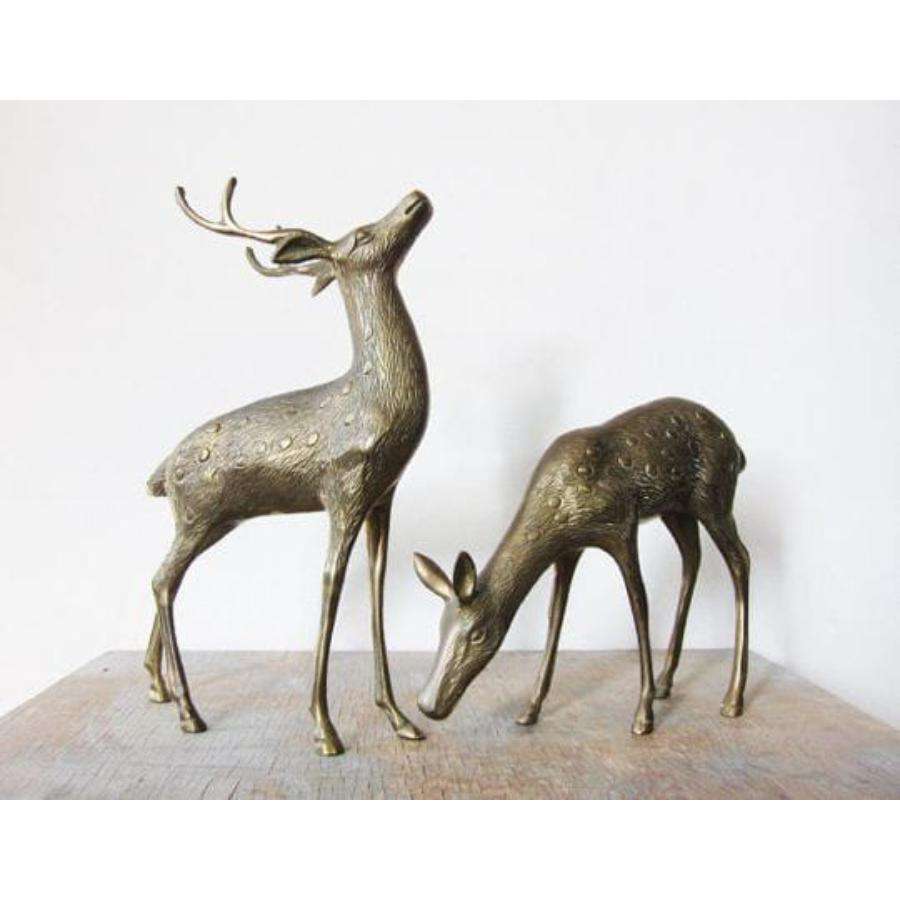 Set of Reindeer Figurine Christmas Holiday Home Decorative Reindeer Sculpture Decorative Models Handmade Gold Deer With Antlers