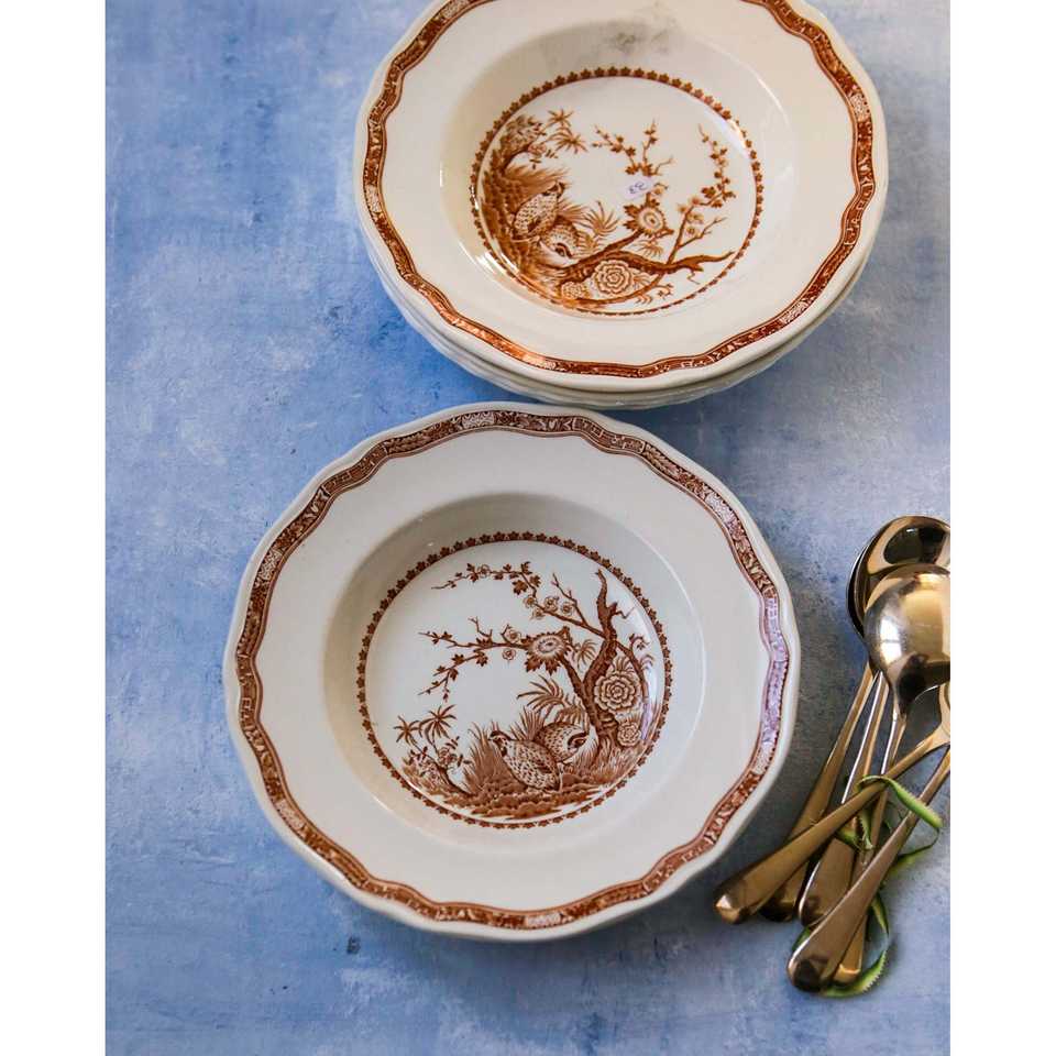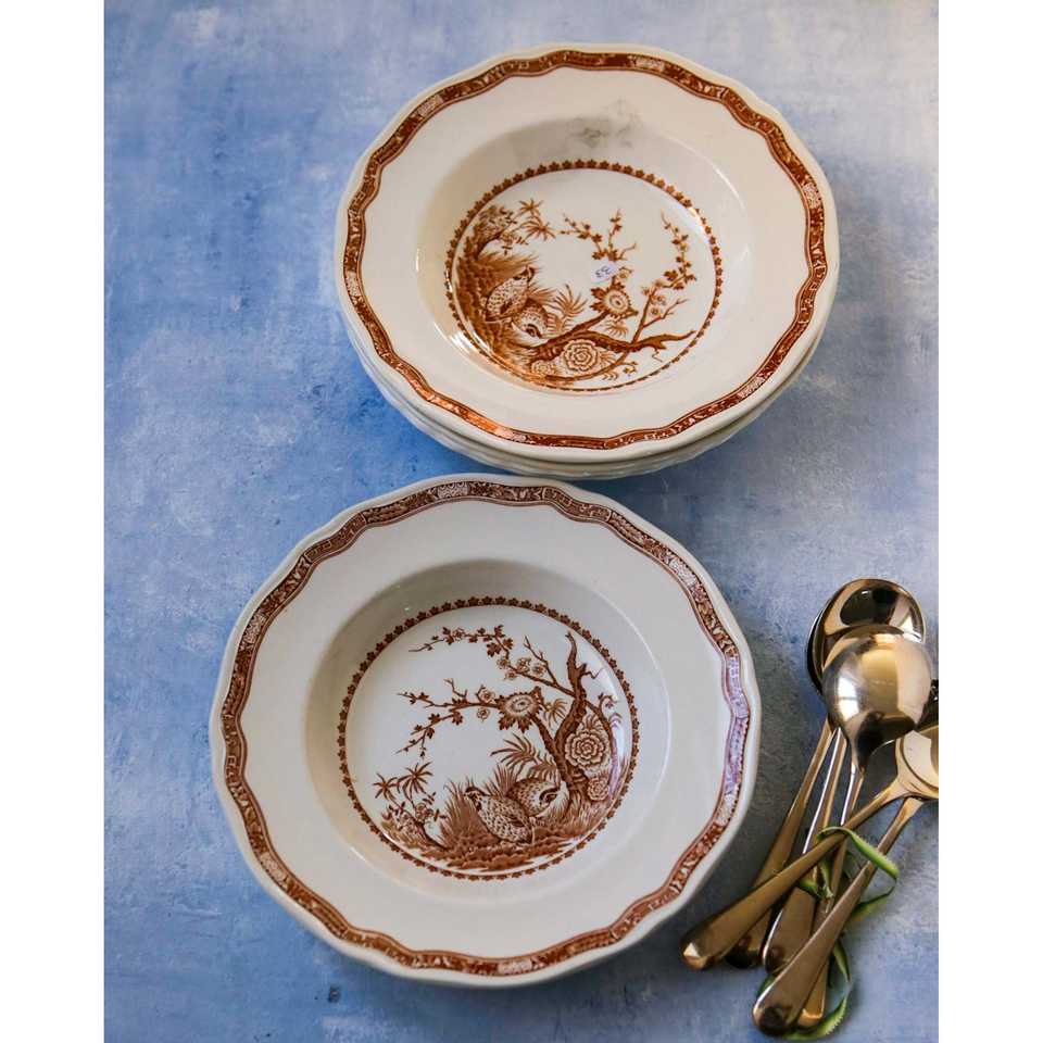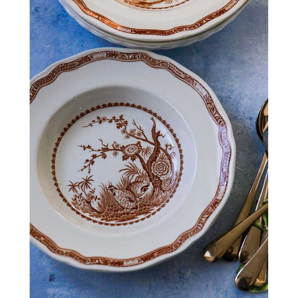 Ensemble de trois assiettes à dîner de luxe foncées avec décoration de caille Vaisselle personnalisable pour café