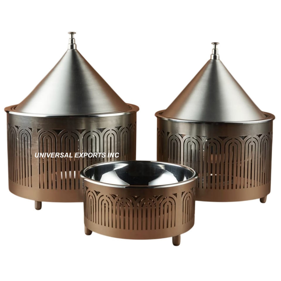 Ensemble de trois casseroles en métal pour la cuisine Casserole design faite à la main Forme ronde Luxe Nouveau chauffe-plats en métal