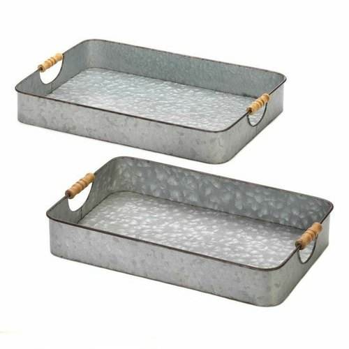 Ensemble de deux plateaux de service en métal galvanisé Forme personnalisée Restaurant Café Hôtel Serveur Plat Alimentaire Fruits Café Serveur Plateau