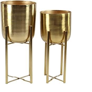 Lot de deux pots de fleurs en métal argenté faits à la main avec support jardinières décoratives pour la décoration de jardin à la maison