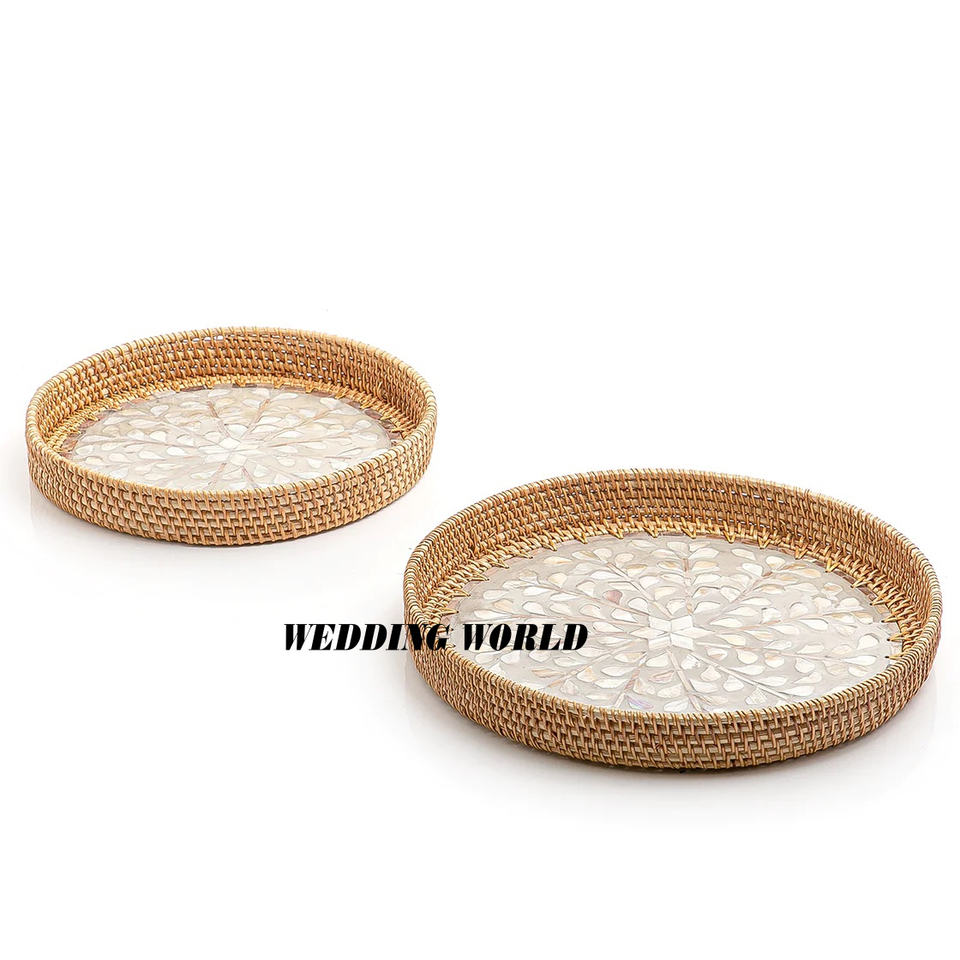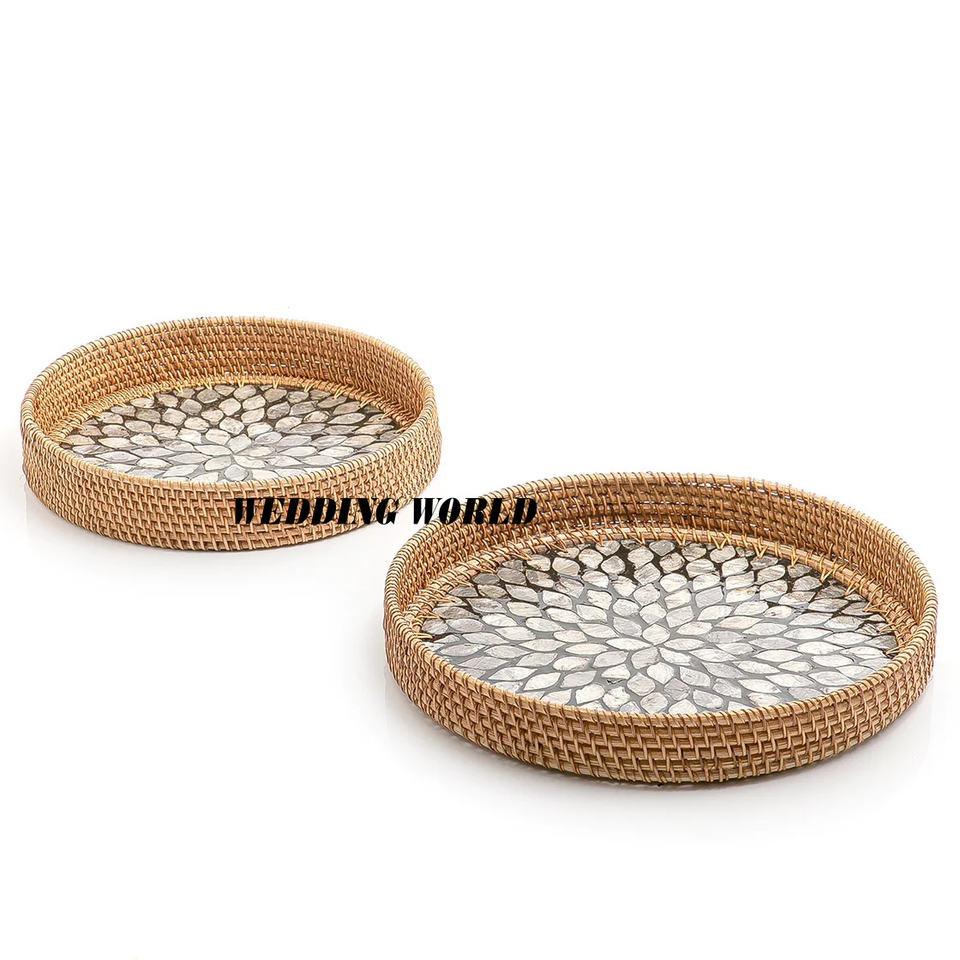 Ensemble rond de deux plateaux de service en rotin plateau de service fait main en nacre taille personnalisée nouveau plateau de service en rotin