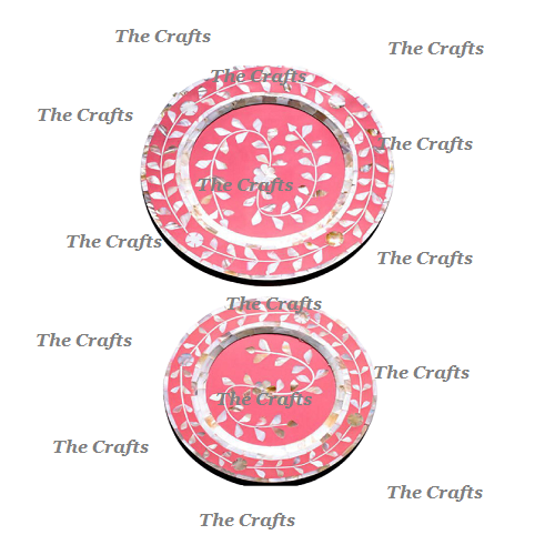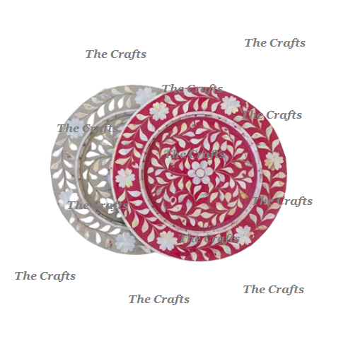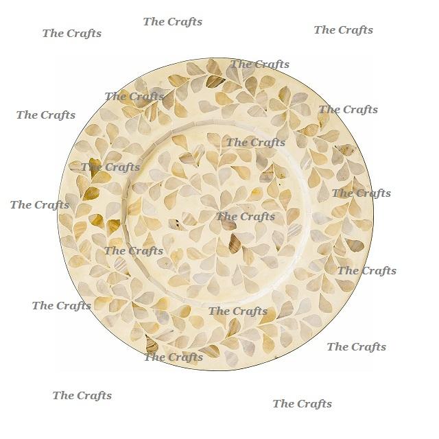Ensemble de deux assiettes de chargeur de forme ronde faites à la main en bois et nacre assiette de chargeur de travail sous assiette en vrac