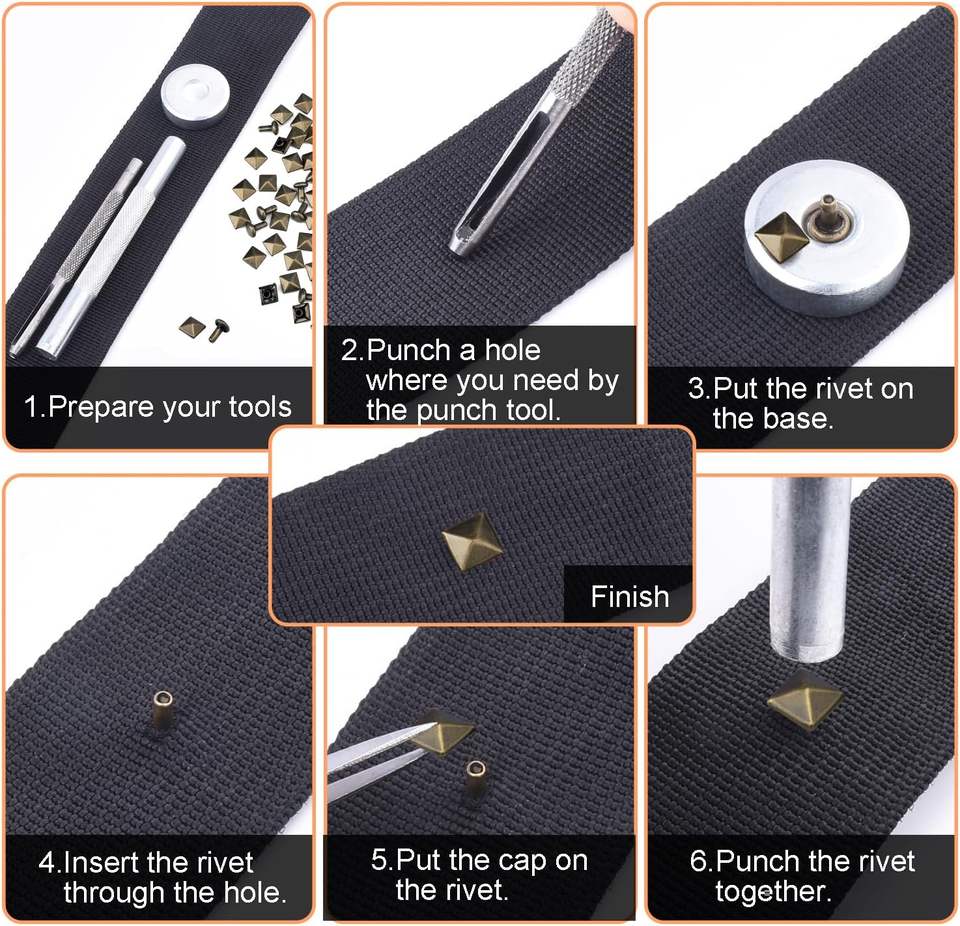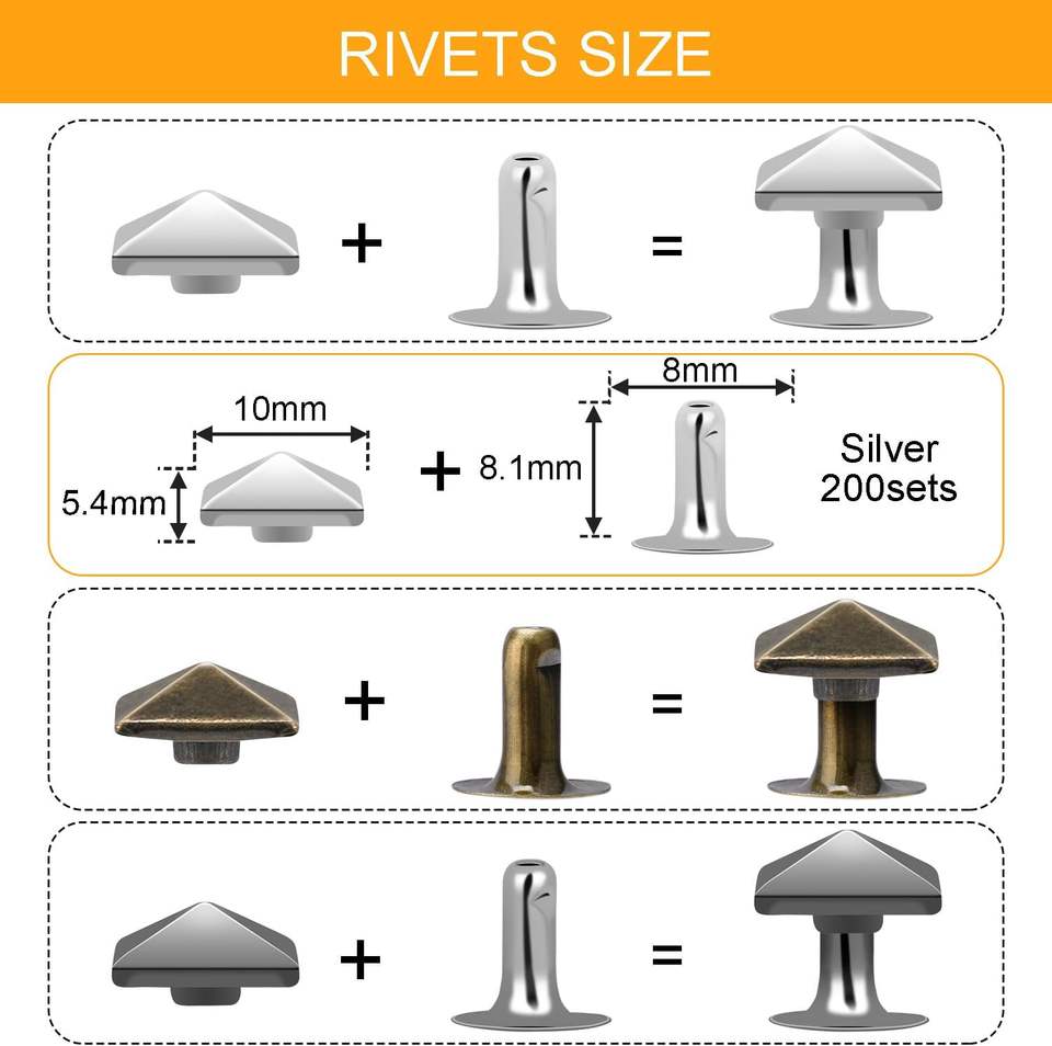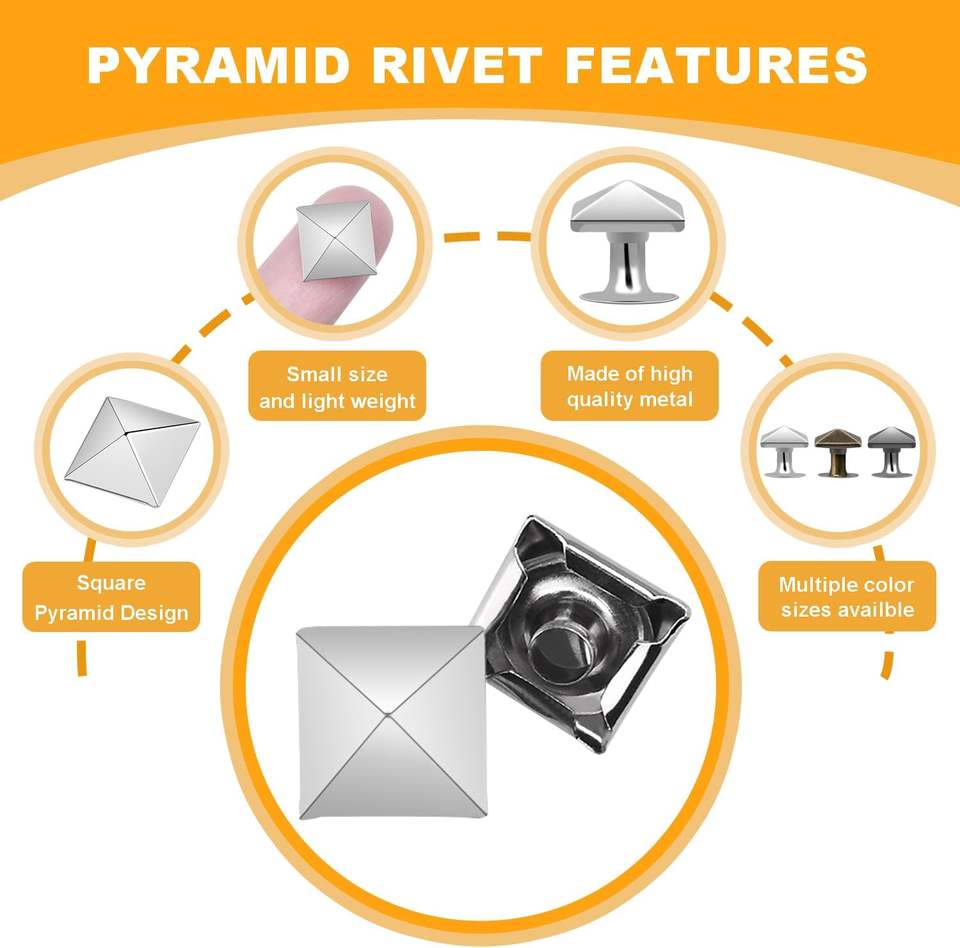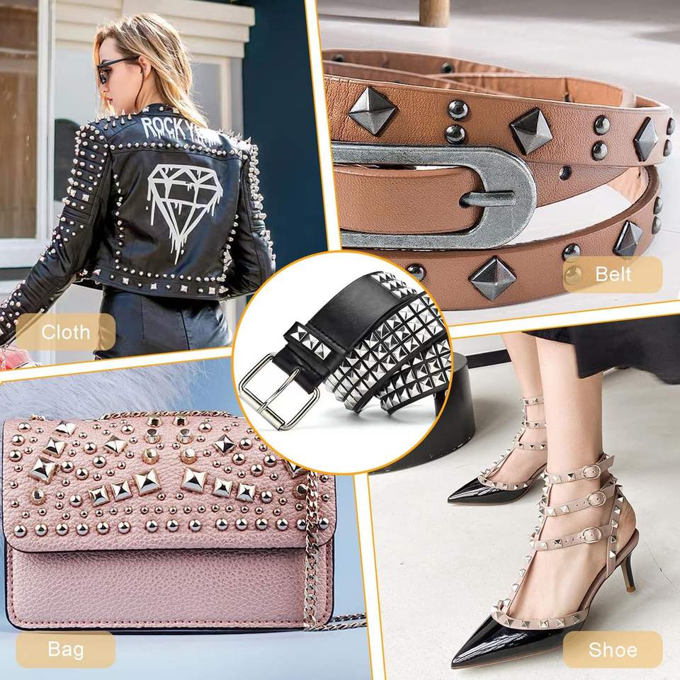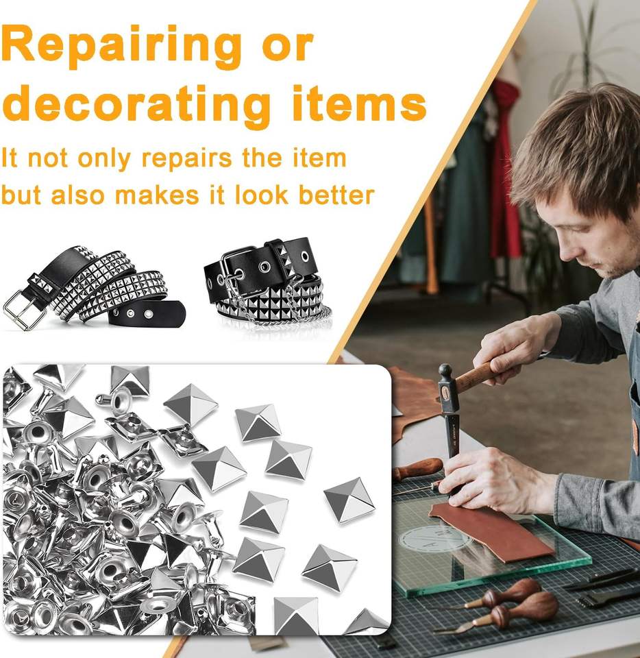 Ensembles de rivets carrés en cuir, clous pyramidaux métalliques pour poignets en cuir, bottes, vêtements, colliers pour animaux, ceintures, sacs, bracelets punk
