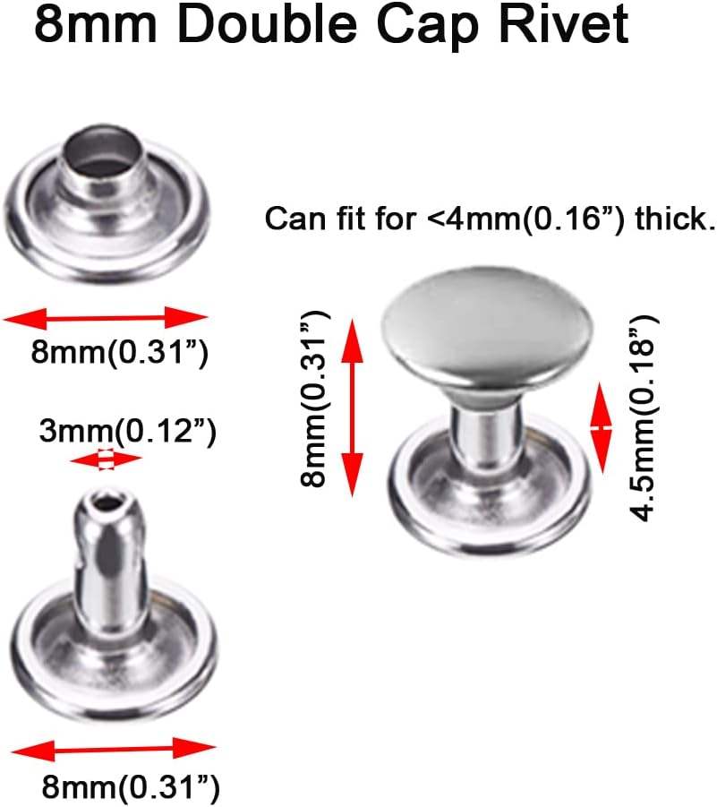 Ensembles de rivets en acier inoxydable pour cuir, rivets à double capuchon, clous métalliques tubulaires, accessoires de réparation et de décoration pour l'artisanat du cuir