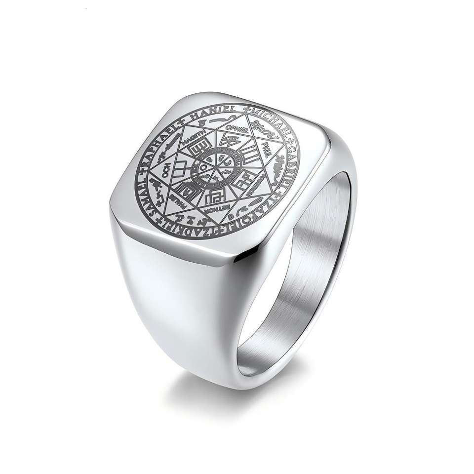 Anneau de protection des sept archanges en acier inoxydable, sceau de Salomon de la Kabbale, bijoux unisexe polis, vente en gros