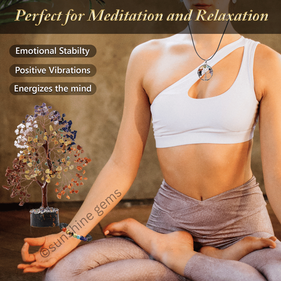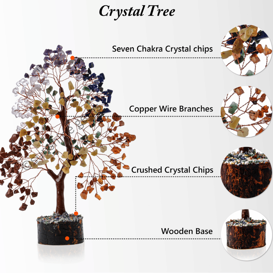Nom du produit:Arbre de Cristal des Sept Chakras (Fil Doré, 300 Puces)