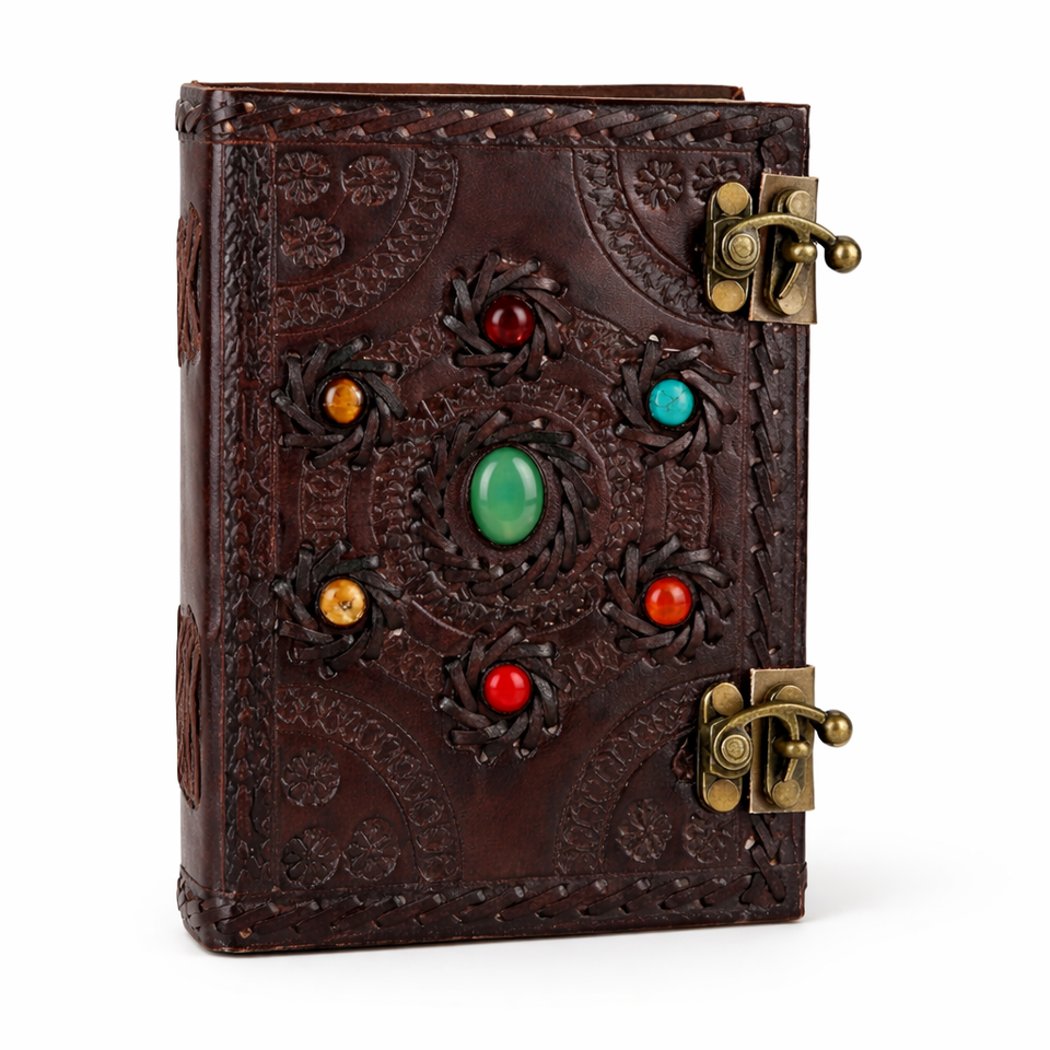Carnet de notes, journal, livre de poésie, carnet de croquis Seven Chakra Medieval Stone Embossed Book of Shadows avec papier fait main