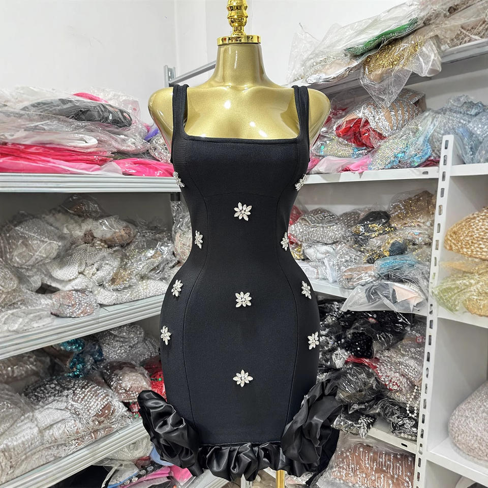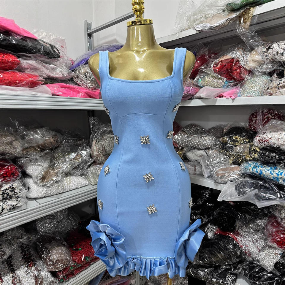 Robe de Soirée Courte Sans Manches Col V à Fente et Dos Nu, Ornée de Cristaux Diamantés, Modèle 2026, Sept Couleurs, Tendance et Meilleure Vente