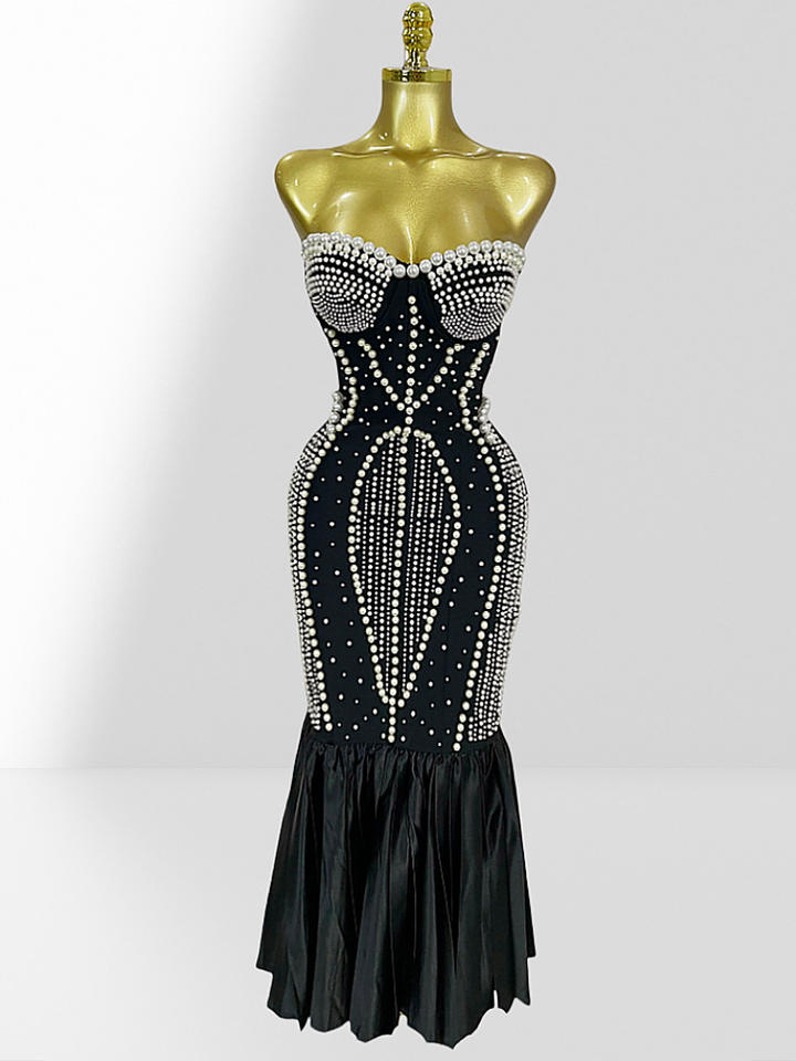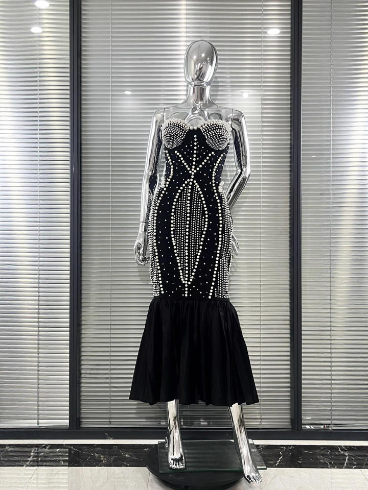 Robe de soirée longue noire perlée à la main, sept couleurs, haute couture, luxe, élégante, moulante et sexy, collection 2026