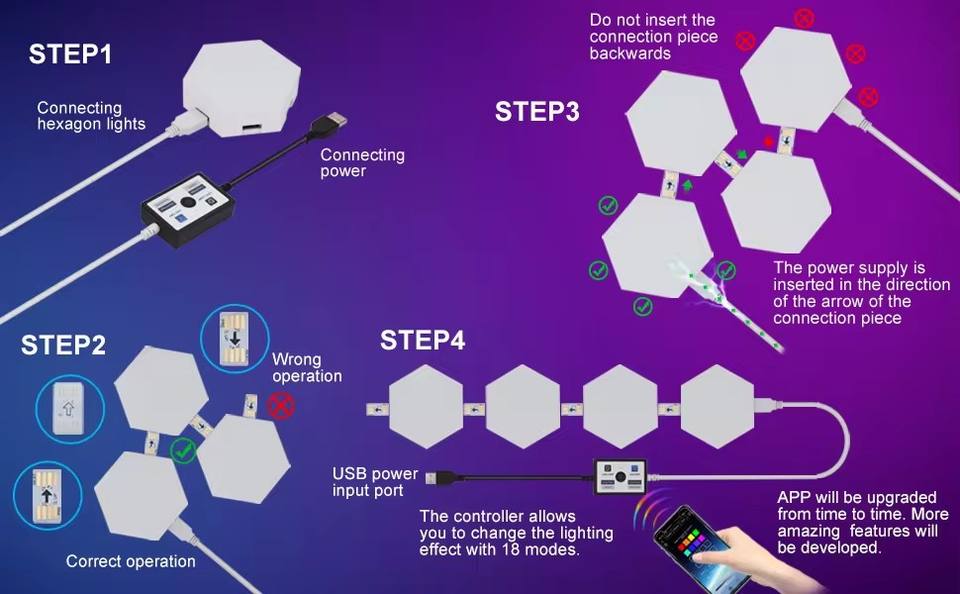 Sept couleurs nouvelle télécommande LED lampe quantique hexagonale lampe de maison intelligente pour studio de danse de salle de jeux