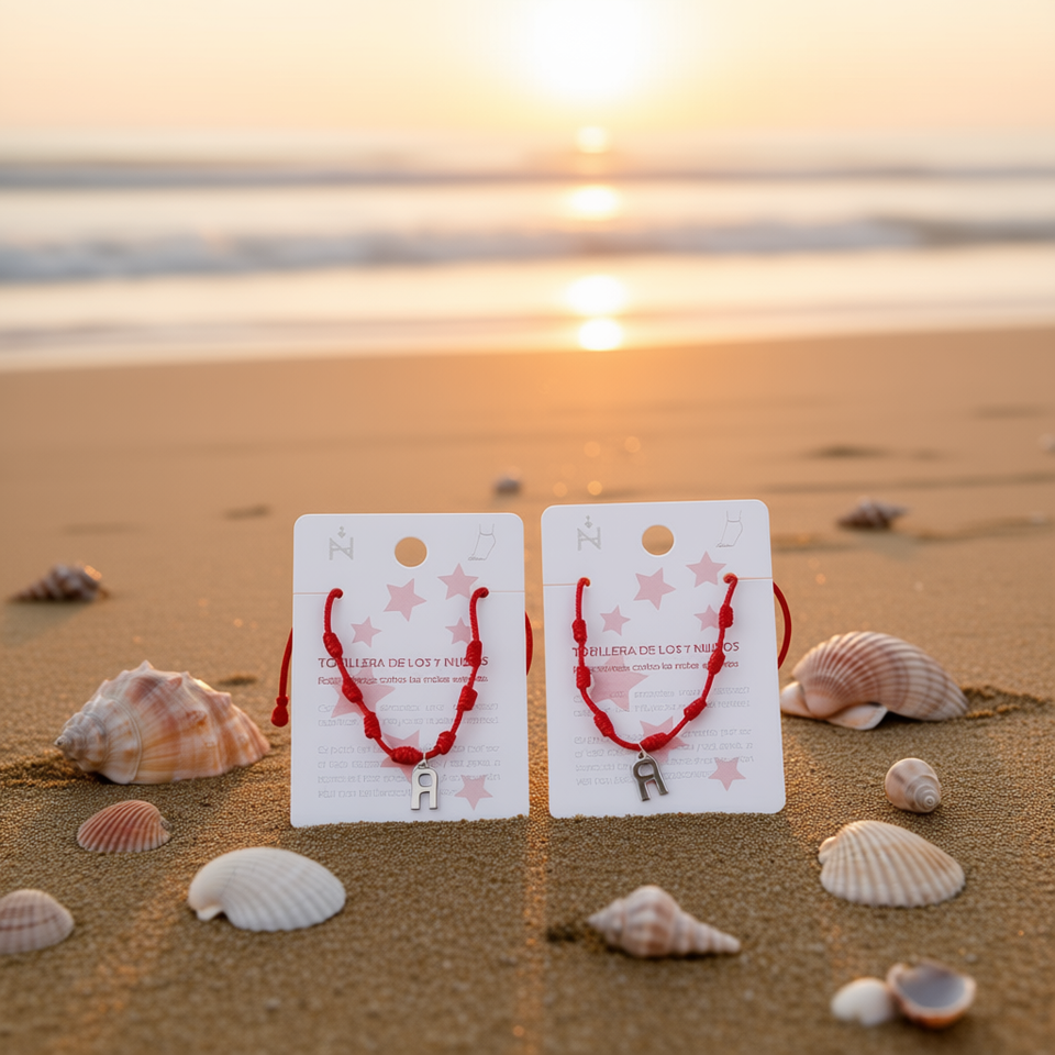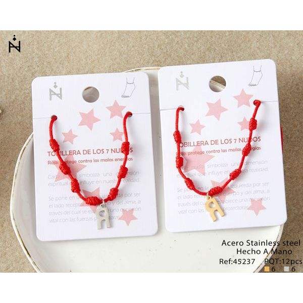 Bracelet de cheville à sept nœuds, lettre R, cordon rouge, acier inoxydable, bijoux faits à la main, cadeau unisexe, style mignon